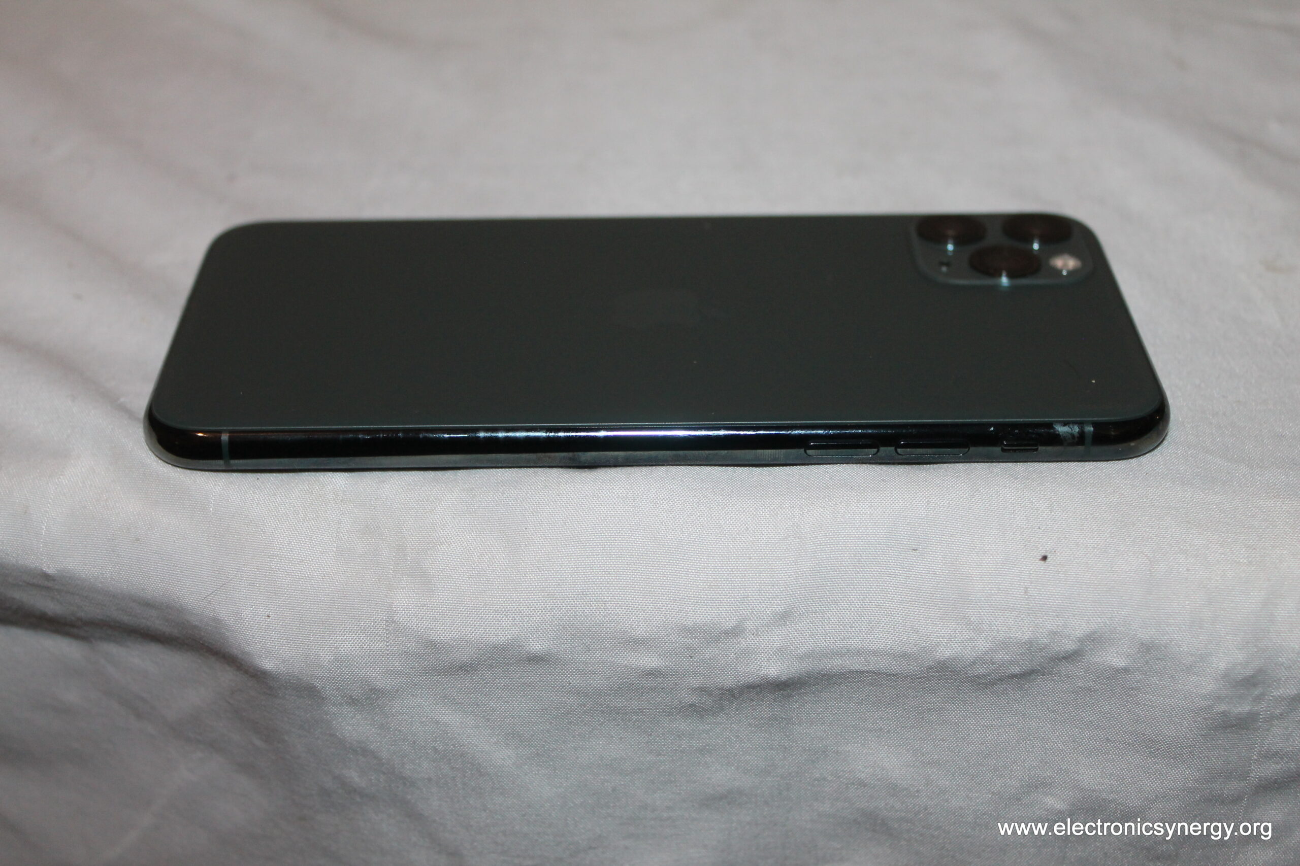 Apple iPhone 11 Pro Max model A2161 in Midnight Green with 256GB storage. This device is locked to AT&T and currently locked to a user account. Screen and overall physical condition are good. Ideal for parts, repair, or for someone able to unlock and activate properly.