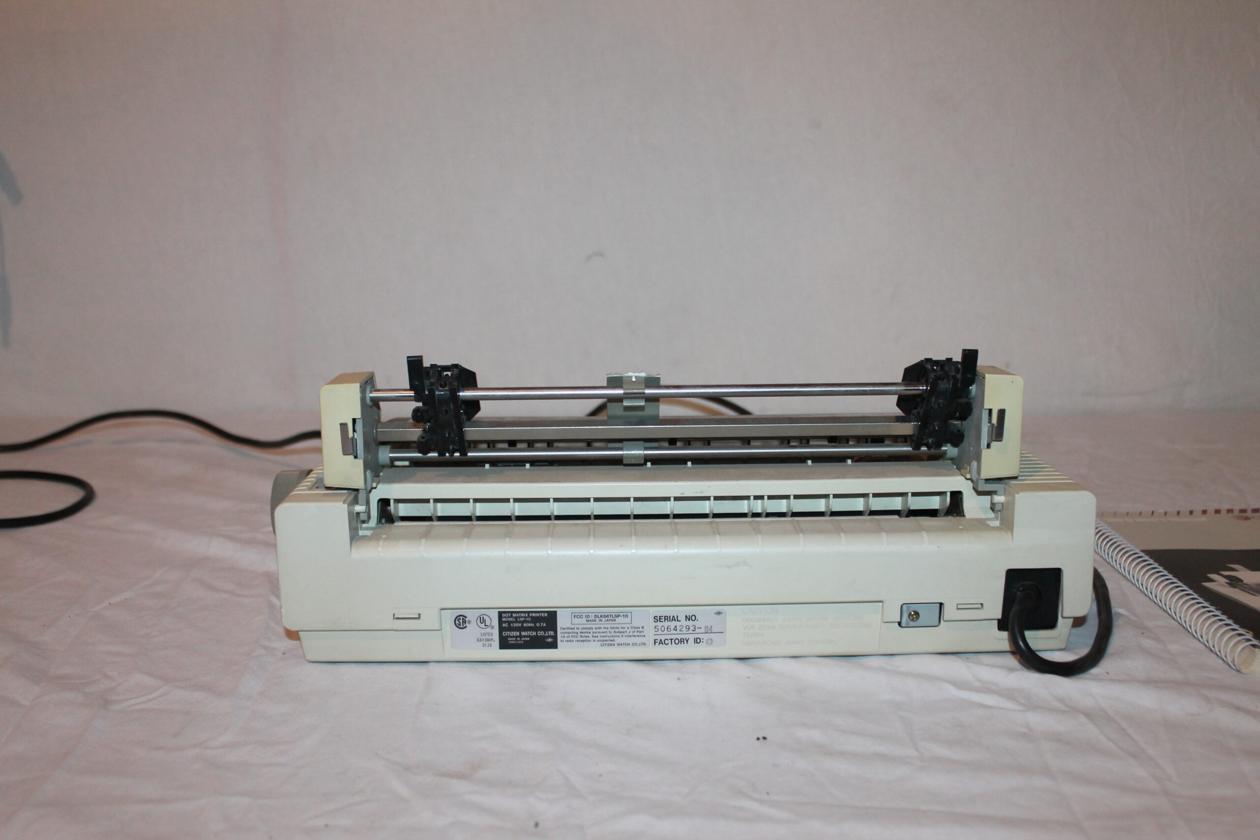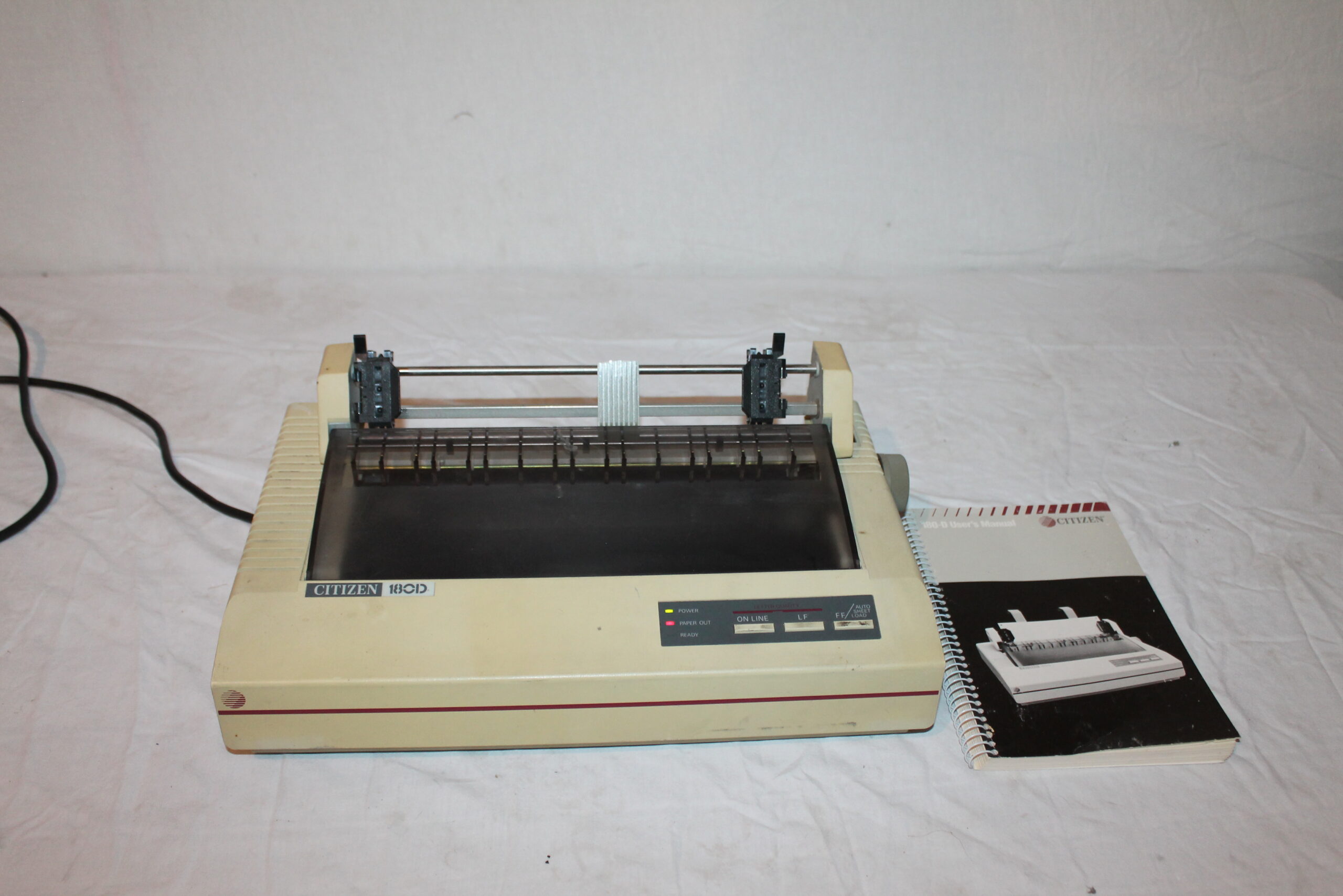 The Citizen 180D is a classic dot matrix printer, great for retro computing, invoices, multi-part forms, and collectors of vintage office equipment. This unit comes with the original manual but will need a new ribbon to function properly.