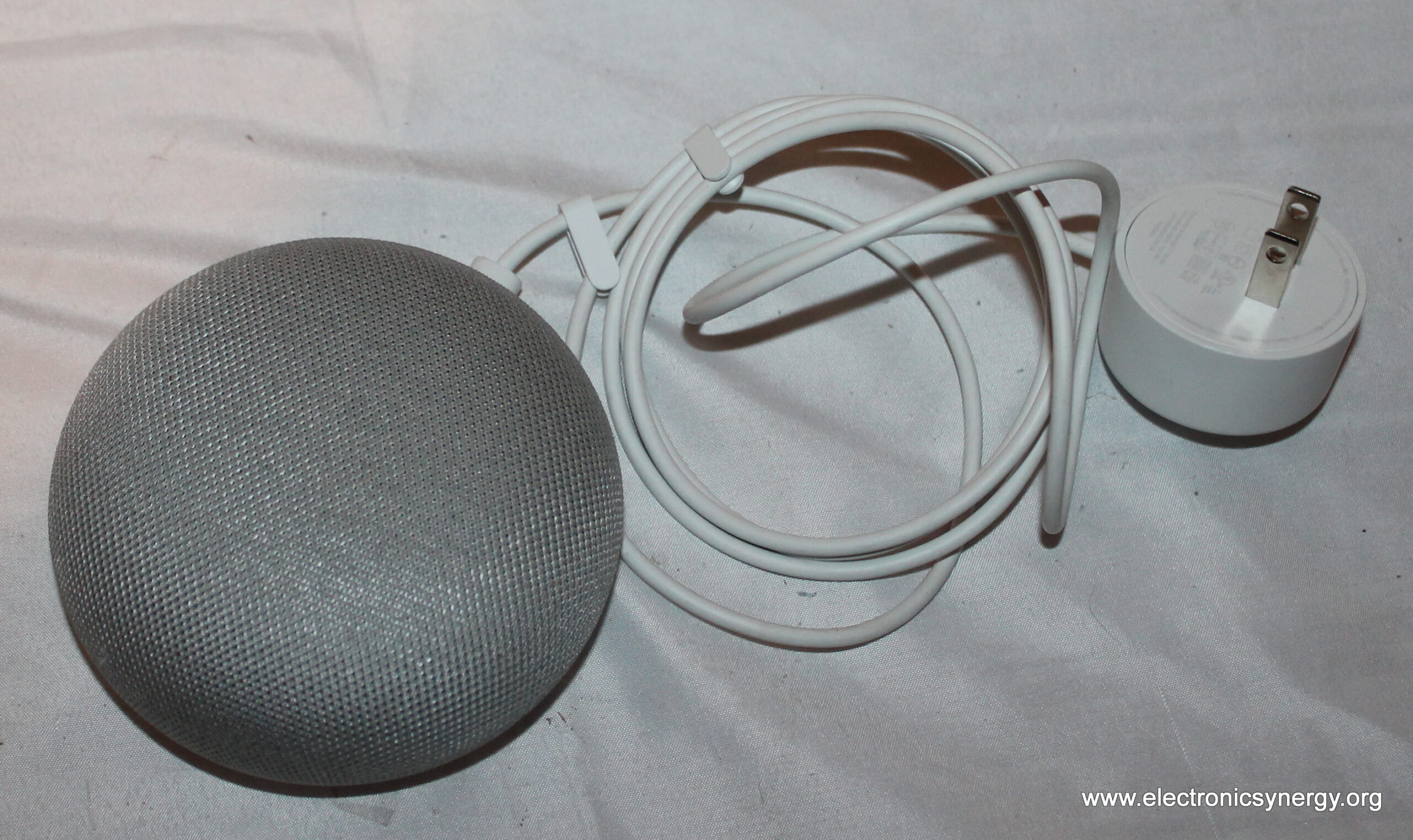 This is a Google Home Mini smart speaker in gray. It has been tested and comes with a power adapter. Use it to play music, control smart home devices, get news and weather updates, set reminders, and more—all with simple voice commands through Google Assistant.