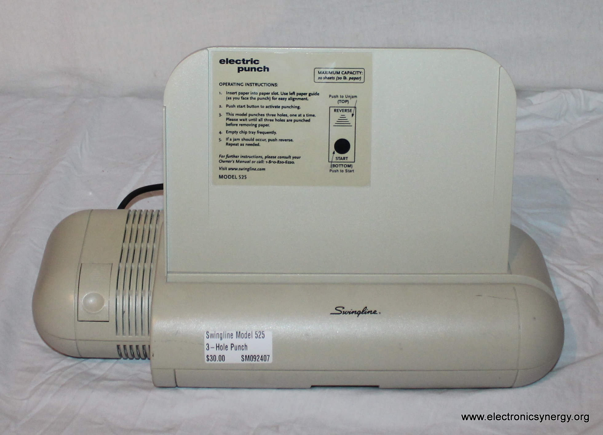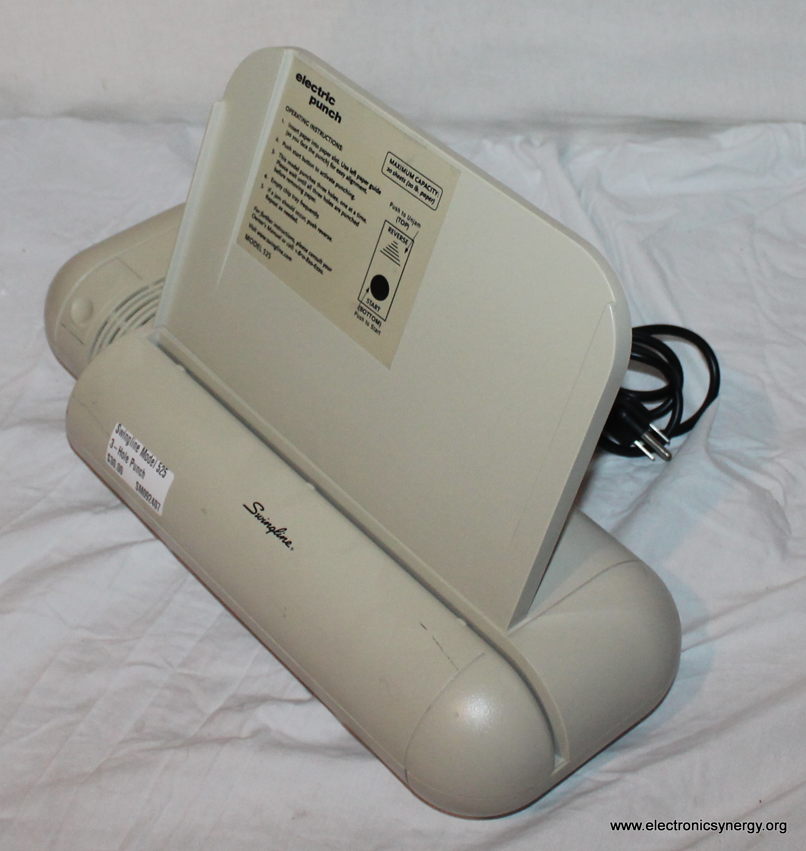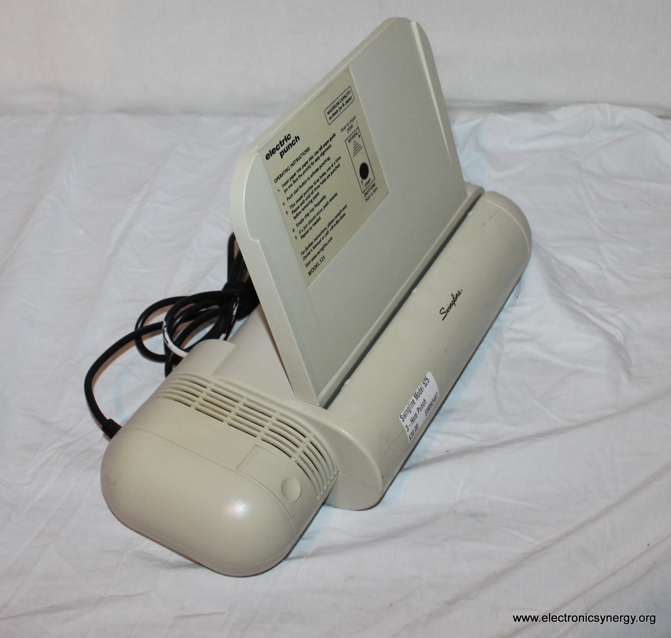 The Swingline 525 is a heavy-duty 3-hole punch designed for office or classroom use. Built for durability and ease of use, it can punch up to 20 sheets at once, making it a reliable tool for organizing binders and paperwork.